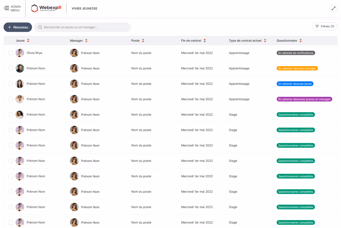 Le service RH avait du mal à obtenir une traçabilité sur les parcours de ces jeunes talents, à comprendre leurs souhaits et motivations, et à recueillir des informations sur les raisons pour lesquelles ils quittaient ou souhaitaient rester dans l'entreprise. La communication entre les différents acteurs était souvent fragmentée et les processus de suivi et de décision étaient longs et complexes.