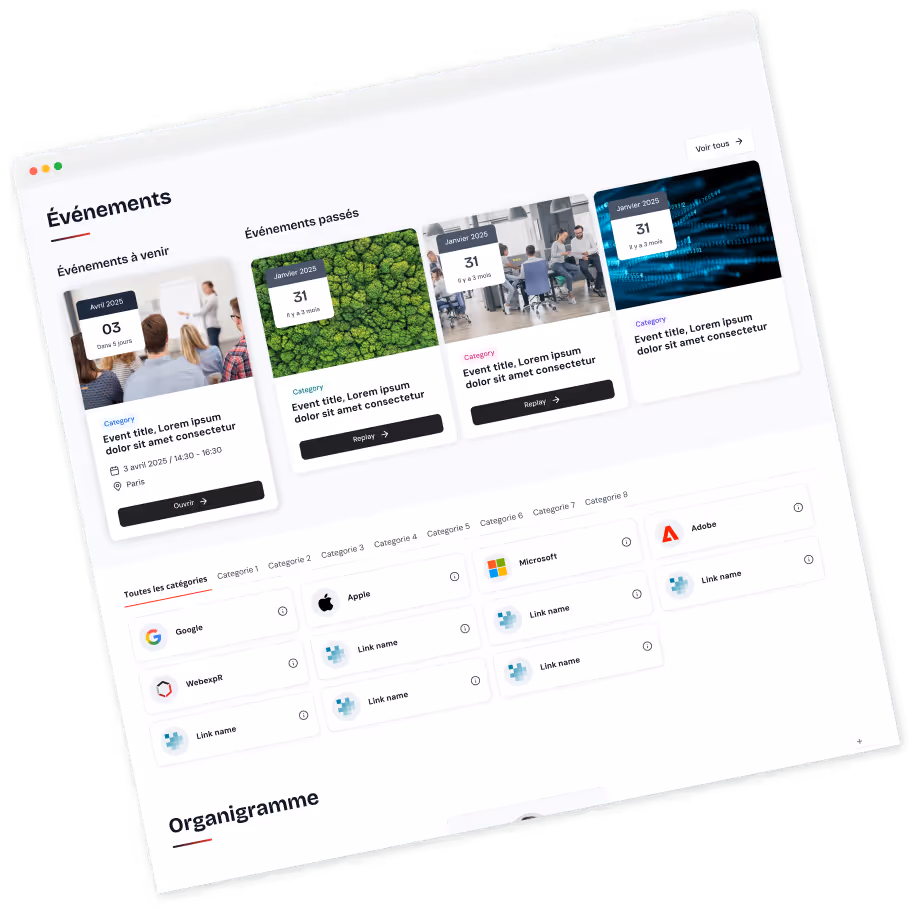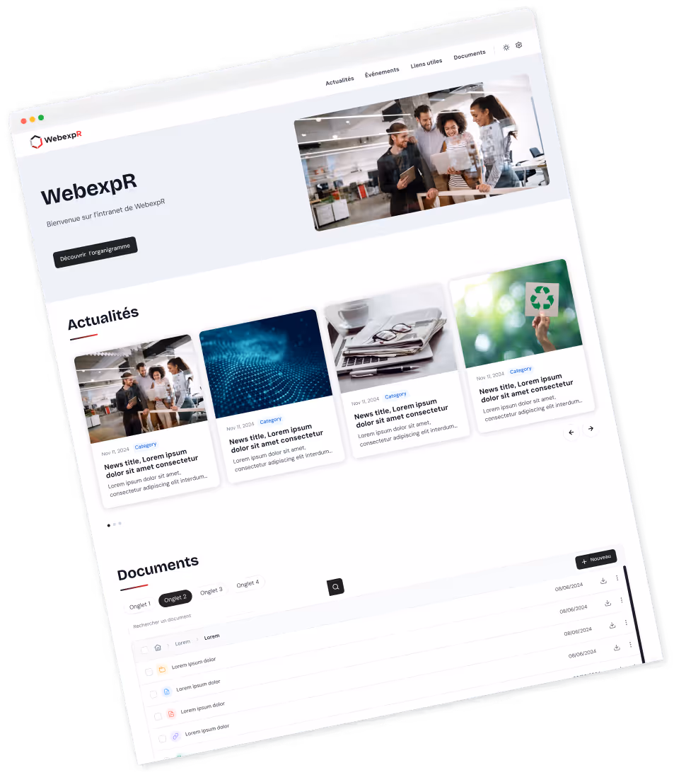 Le flux d'actualités est la solution idéale si vous souhaitez optimiser votre communication interne. Entièrement personnalisable, cette fonctionnalité vous permet de communiquer efficacement en publiant des actualités d’entreprises, des fichiers, des photos ou encore des vidéos.